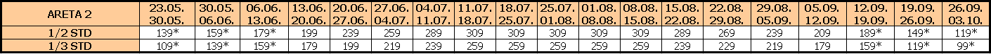 Za sopstveni prevoz cena aranžmana se umanjuje za 30€ po osobi, a 20€ za smene označene ZVEZDICOM (*)