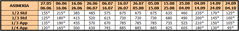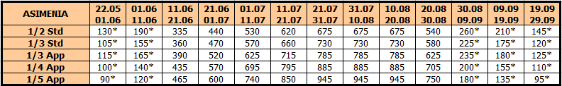 U smenama sa zvezdicom *, u slučaju sopstvenog prevoza cena paket aranžmana se umanjuje za 25€ po osobi.