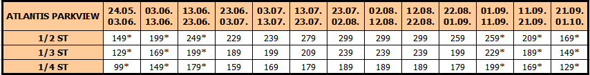 Cene označene zvezdicom* iskazane su po osobi i obuhvataju smeštaj i prevoz. U slučaju sopstvenog prevoza u smenama sa * cena se umanjuje za 20 eur po osobi od ukupne vrednosti aranžmana.