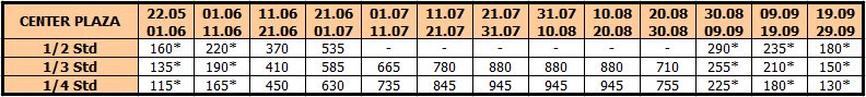 U smenama sa zvezdicom *, u slučaju sopstvenog prevoza cena paket aranžmana se umanjuje za 25€ po osobi.