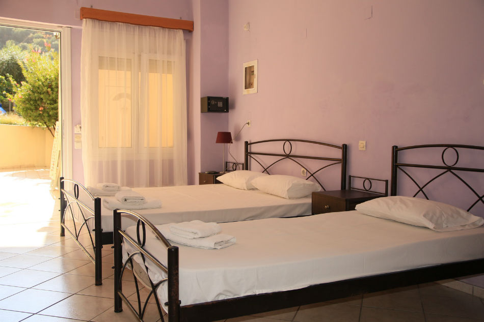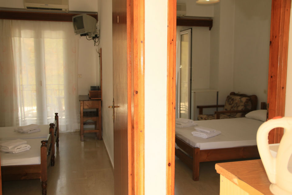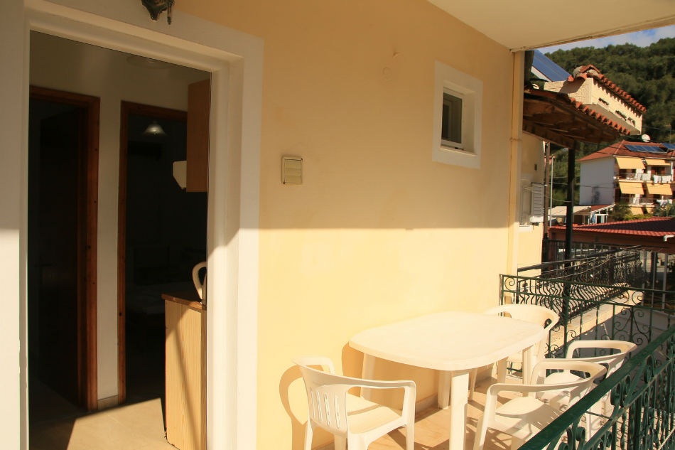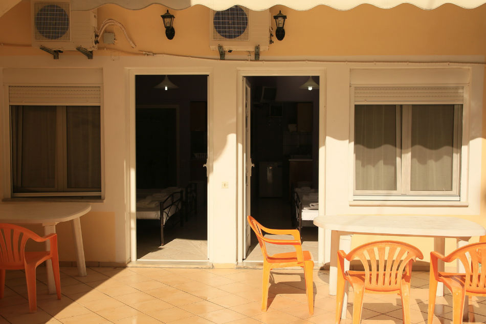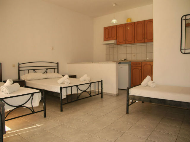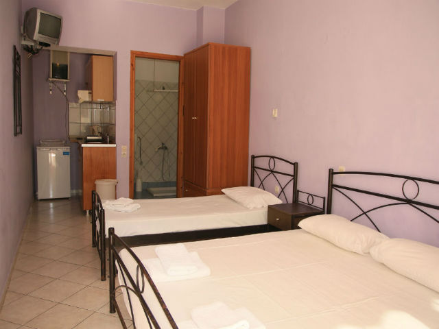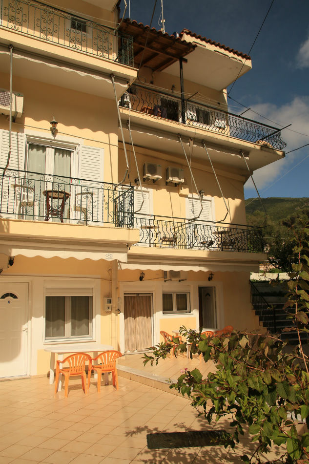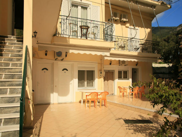 Nalazi se na glavnom putu ka centru Parge, sa leve strane puta, na 50m ispod mini marketa, “rent a bike-a” i taverne. Uz sam put je uređeni trotoar – staza za pešake, koji je osvetljen noću. Udaljen je 350m od plaže Piso Krioneri i 425m od plaže Krioneri koje se nalaze u samom centru Parge. Obezbeđen parking za sve goste objekta. Svaki studio i apartman u objektu ima terasu ili popločani deo dvorišta, čajnu kuhinju, kupatilo sa tuš kadom, TV, Wi-Fi i A/C – doplata za 1 dan 5€, 10 dana 40€