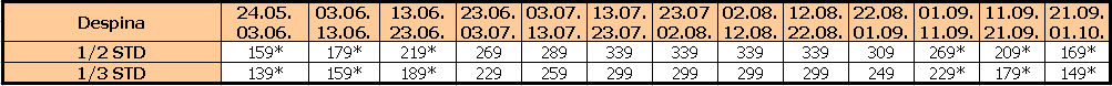 Za sopstveni prevoz cena aranžmana se umanjuje za 30€ po osobi, a 20€ za smene označene ZVEZDICOM (*)