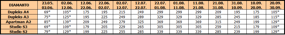 NAPOMENA: U četvorokrevetnom apartmanu i četvorokrevetnom dupleks apartmanu, deca ne ostvaruju popust