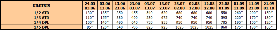 U smenama sa zvezdicom *, u slučaju sopstvenog prevoza cena paket aranžmana se umanjuje za 25€ po osobi.