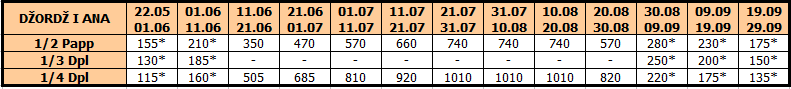 U smenama sa zvezdicom *, u slučaju sopstvenog prevoza cena paket aranžmana se umanjuje za 25€ po osobi.