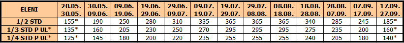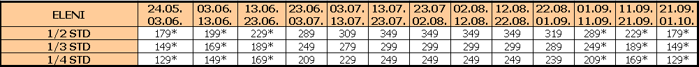 Za sopstveni prevoz cena aranžmana se umanjuje za 30€ po osobi, a 20€ za smene označene ZVEZDICOM (*)