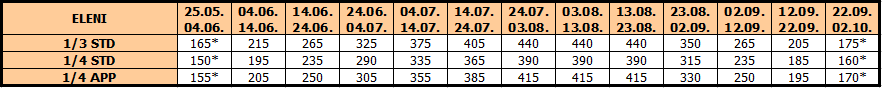 Opis: Vila Eleni je nova vila I biće spremna za sezonu 2019. Vila raspolaže trokrevetnim I četvorokrevetnim apartmanima, koji se nalaze na prvom spratu. Svi apartmani imaju opremljen kuhinjski deo, kupatilo/wc, terasu, TV, WiFi internet i klima uređaj (uz doplatu na licu mesta, od 6e dnevno).