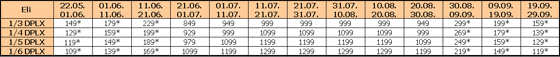 Cene su izražene u evrima po APP/DPLX na bazi najma, osim kod cena sa * gde je paket aranžman, BEZ DINARSKOG DELA