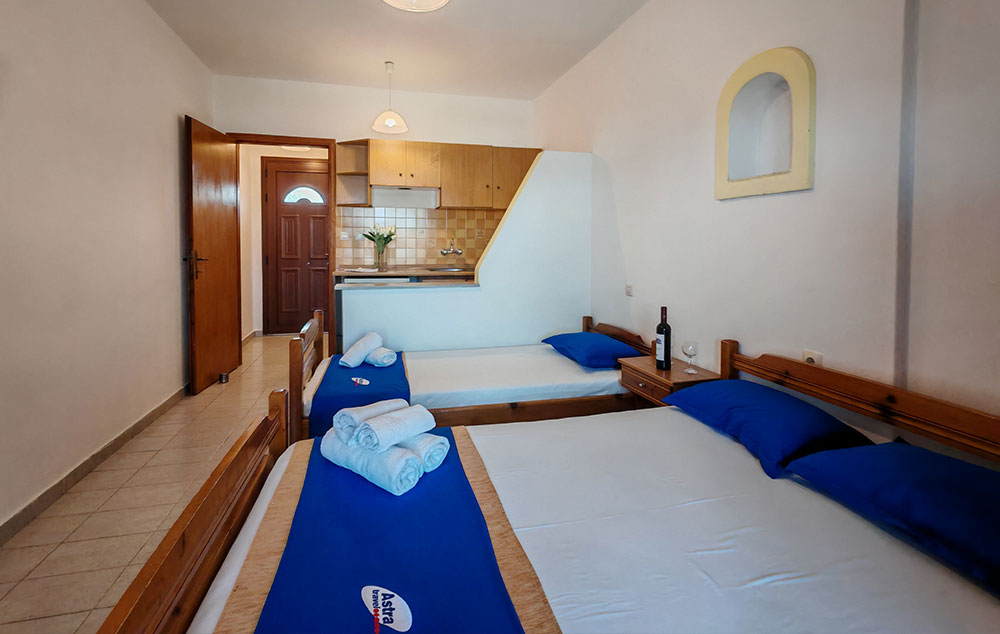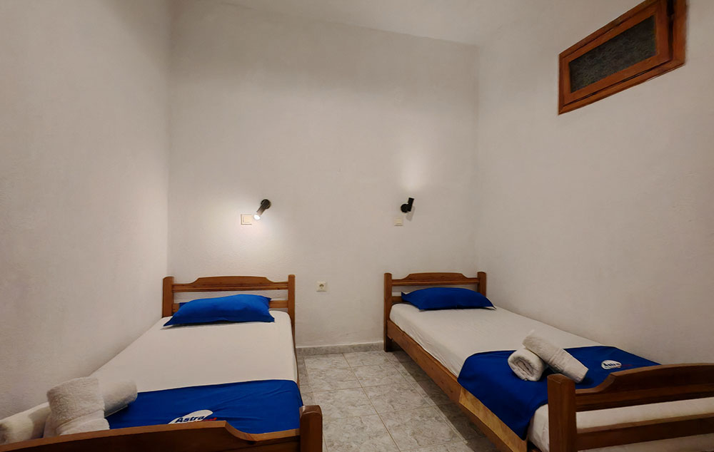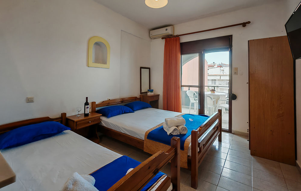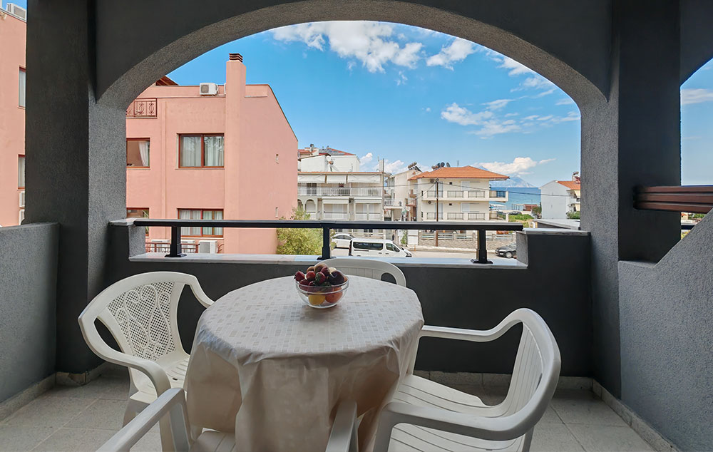 Kuća Evros se nalazi na 120m od plaže u Sarti beach-u. Studiji se nalaze na prvom i drugom spratu i imaju pogled na more. Kuća ima signal za besplatno korišćenje bežičnog interneta, a smeštajne jedinice imaju TV i klima uređaj čije se korišćenje posebno doplaćuje. Apartmani se nalaze u prizemlju, imaju po dve spavaće sobe, s tim da jedna od soba nema prozor i zato se prodaju po povoljnijoj ceni. Odličan su izbor za porodice koje žele povoljniji apartmanski smeštaj.