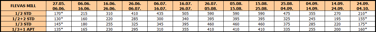 – termini označeni * nemaju umanjenje za sopstveni prevoz