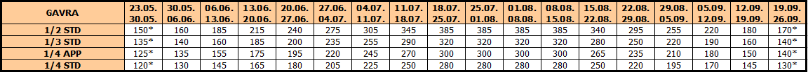 – termini označeni * nemaju umanjenje za sopstveni prevoz