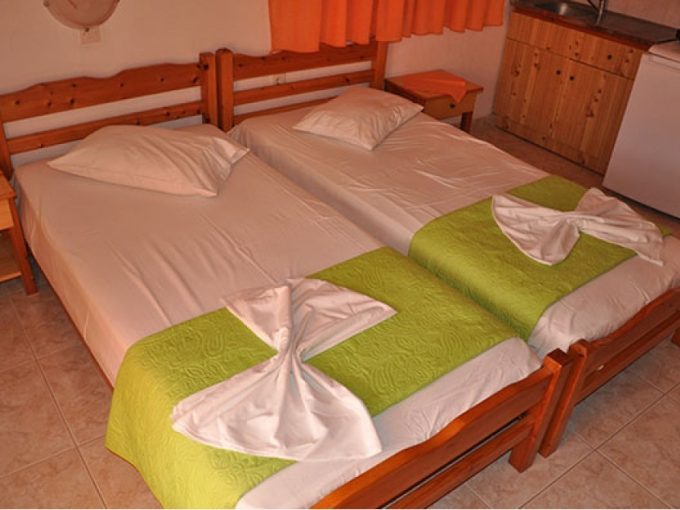 Opis: Smeštajne jedinice u našoj ponudi se nalaze u prizemlju i na prvom spratu, sve imaju opremljen kuhinjski deo, kupatilo/wc, terasu, SAT TV, WiFi internet i klima uređaj (uz doplatu na licu mesta, od 6€ dnevno). Svaki dvokrevetni studio ima dva odvojena kreveta, a svaki četvorokrevetni ima dva odvojena kreveta i krevet na sprat.