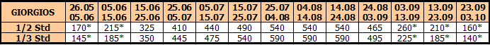 U smenama sa zvezdicom *, u slučaju sopstvenog prevoza cena paket aranžmana se umanjuje za 25€ po osobi.