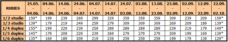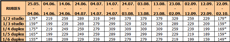 Cene su izražene u evrima po osobi na bazi paket aranžmana (prevoz + smeštaj) za 10 noćenja