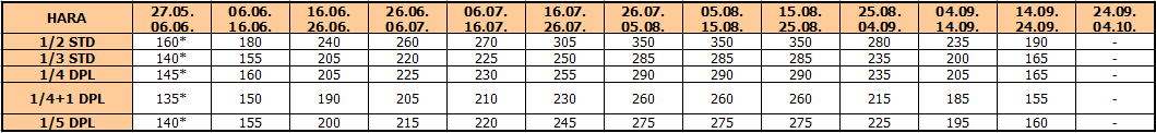 – termini označeni * nemaju umanjenje za sopstveni prevoz