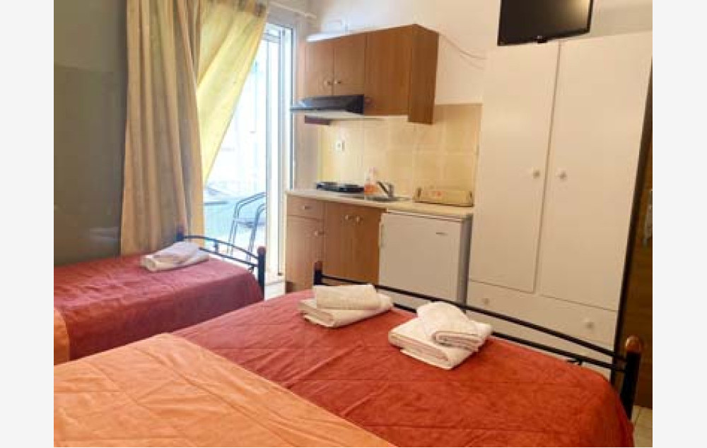 Vila Hara je odlična vila starijeg datuma, na oko 150 metara od mora, plaže, šetališta i centra Pefkija. Sastoji se od studija i apartmana u prizemlju i na prvom spratu sa pogledom na ulicu ili dvorište. Opremljeni su bežičnim internetom, TV – om i klima uredjajem (ukljucena u cenu u julu i avgustu, van tog perioda 5€ po danu). Dvokrevetni i trokrevetni studiji se nalaze na prvom spratu i sastoje se od kuhinjskog dela, dela sa francuskim ležajem, odnosno sa francuuskim i standardnim, kupatila i terase sa garniturom za sedenje. Veličina studija je cca 16 – 18 kvm + terasa. Trokrevetni dupleks apartmani se nalaze na prvom spratu i u prizemlju, sastoje se od velike kuhinje sa velikim frižiderom i zamrzivačem i šporeta sa ringlama i rernom. Dve spavaće sobe, jedna je sa francuskim, a druga sa standardnim ležajem, kupatilo i velika terasa s pogledom na dvorište i ulicu, na kojoj je garnitura za sedenje. Veličina apartmana je cca 26 kvm + terase. Četvorokrevetni dupleks apartmani se nalaze na prizemlju i na prvom spratu spratu, sastoji se od velike kuhinje sa velikim frižiderom sa zamrzivačem, šporeta sa ringlama i rernom. Dve spavaće sobe, jedna je sa francuskim ležajem, a druga sa dva standardna ležaja, kupatilo i velika terasa sa pogledom na ulicu i dvorište, sa garniturom za sedenje. Veličina apartmana je cca 30 kvm + terase. Četvorokrevetni+1 dupleks apartman se nalazi u prizemlju, sastoji se od velike kuhinje sa velikim frižiderom sa zamrzivačem, šporeta sa ringlama i rernom, kao i velikim plazma televizorom i jednim ležajem (sofa za dete do 15 godina). Dve spavaće sobe, jedna je sa francuskim ležajem, a druga sa dva standardna ležaja, kupatilo i velika terasa s pogledom na ulicu i dvorište, sa garniturom za sedenje. Veličina apartmana je cca 32 kvm + terase. Petokrevetni dupleks apartman se nalazi na prizemlju, sastoj se od kuhinje sa velikim frižiderom sa zamrzivačem, šporeta sa ringlama i rernom, kao i trpezarijskim stolom. Dve spavaće sobe, jedna je sa francuskim i standardnim ležajem, a druga sa francuskim ležajem, kupatilo i velika terasa s pogledom na ulicu i dvorište, sa garniturom za sedenje. Veličina apartmana je cca 32 kvm + terasa. Vila Hara je B + kategorije i ima mogućnost parkiranja na ulici, pored vile.