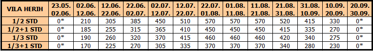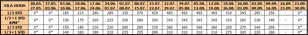 CENOVNIK LETO 2026. – 10 noćenja