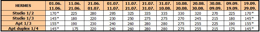Cene su izražene u evrima po app/studiju, najam za 10 noćenja