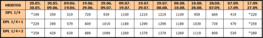 Cene su izražene u evrima po osobi – paket aranžman (smeštaj+prevoz iz Beograda) za 10 noćenja
