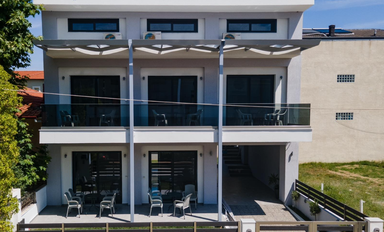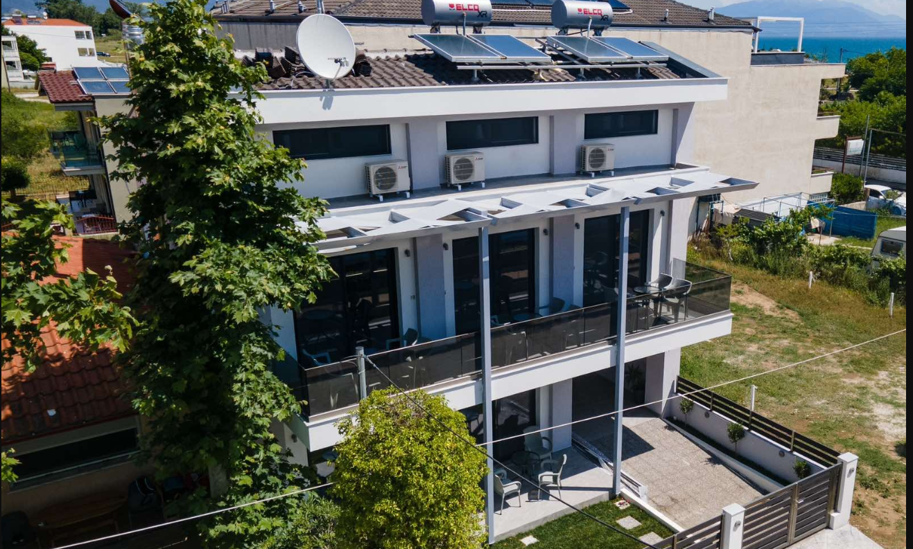 Potpuno nov objekat sagrađen 2024.godine, jedan od najnovijih u letovalištu Stavros. Objekat je moderan i najsavremenije arhitekture, a o tome najbolje govori sam izgled ovog objekta, kako spoljni, tako i unutrašnji. Vila sadrži studije i mezonete. Sve smeštajne jedinice su komforne, opremljeni najkvalitetnijim, modernim nameštajem. Svaki poseduje mini kuhinju, kupatilo sa tuš kadom, LCD TV , klima uređaj, fen za kosu,Wi Fi, terasu sa garniturom za sedenje.