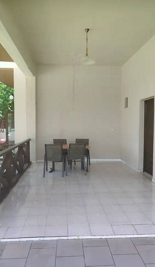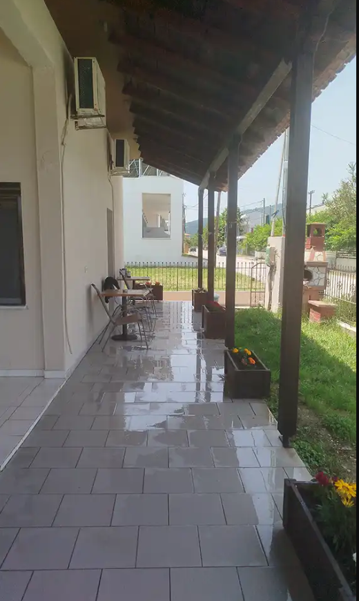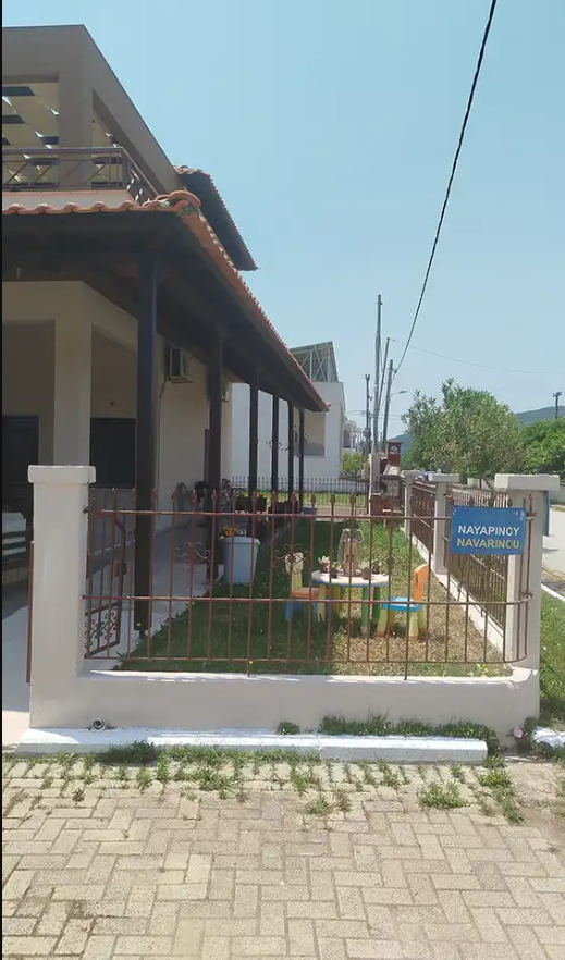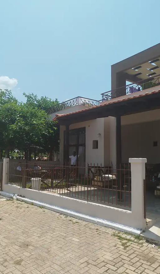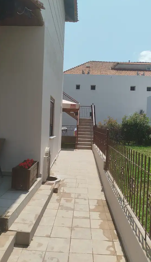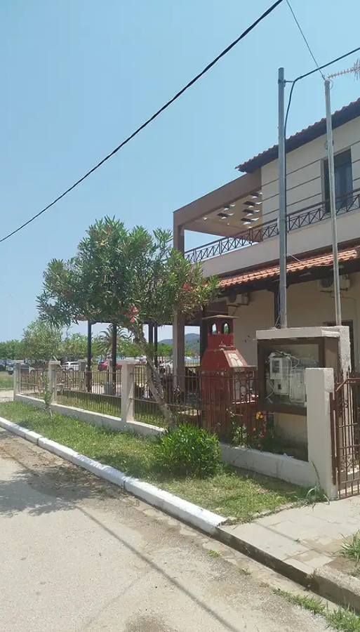 Vila Irini se nalazi u novijem delu Stavrosa, na odličnoj poziciji, 20 metara od plaže. Poseduje dvorište koje ima dva ulaza za studije, garnituru za sedenje, roštilj. Studiji imaju direktan pogled na more, bočni pogled na more i jedan studio ima pogled na ulicu i susedno dvorište. Smeštaj: Vila raspolaže studijima 1/3 (francuski ležaj i singl ležaj) za maksimalno tri odrasle osobe i jedno dete do 6 godina i 1/3+1 (francuski ležaj i krevet na sprat) za dve odrasle osobe i dvoje dece do 12 godina. Svi studiji sadrže opremljenu kuhinju, kupatilo, TV, wi-fi, terasu, klima uređaj (uz doplatu na licu mesta 5 eura dnevno u studiju). Promena posteljine je na 5 dana, vila nema peškire, gosti sami održavaju higijenu. Vila ne poseduje parking, ali dostupan je besplatan javni parking koji se nalazi odmah preko puta objekta. Sama lokacija vile Irini je najbolja preporuka za turiste kojima je blizina plaže presudna u izboru smeštaja.