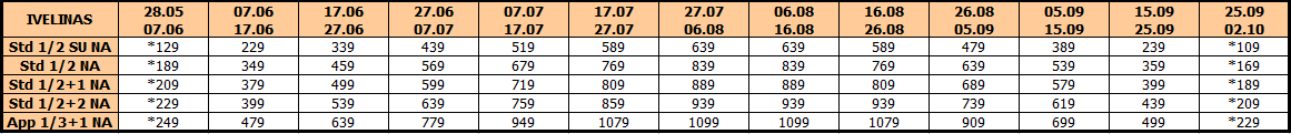 Popusti: Deca od 2 do 12 godina u sopstvenom ležaju ostvaruju popust od 15€ na cenu iz tabele i imaju svoje sedište u autobusu (odnosi se na polaske iz Novog Sada, Beograda do Aleksinca, Niša).