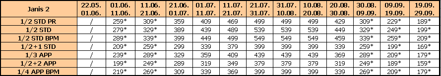 Za sopstveni prevoz cena aranžmana se umanjuje za 30€ po osobi, a 20€ za smene označene ZVEZDICOM (*)