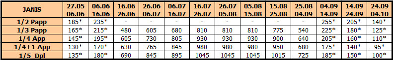 U smenama sa zvezdicom *, u slučaju sopstvenog prevoza cena paket aranžmana se umanjuje za 25€ po osobi.