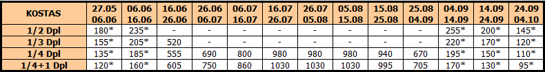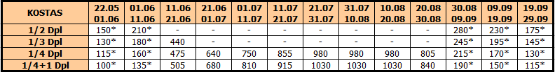 U smenama sa zvezdicom *, u slučaju sopstvenog prevoza cena paket aranžmana se umanjuje za 25€ po osobi.