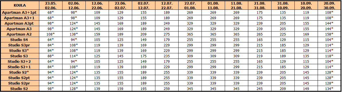 NAPOMENA : U četvorokrevetnom apartmanu i četvorokrevetnom dupleks apartmanu, deca ne ostvaruju popust ukoliko koriste ležaj