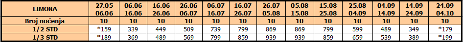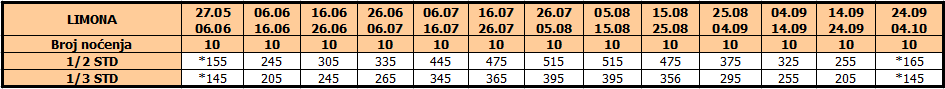 CENOVNIK LETO 2026. – 10 NOĆENJA