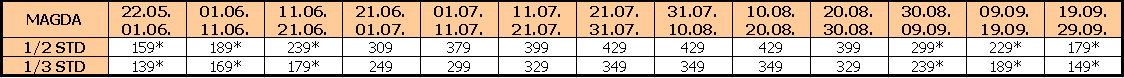 U slučaju spajanja smena na organizovanom prevozu, cena aranžmana za drugu smenu se umanjuje za 25€ po osobi osim za smene koje su u tabeli označene zvezdicom (*).