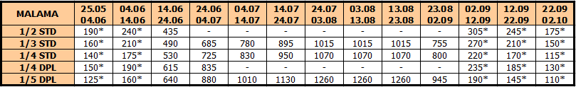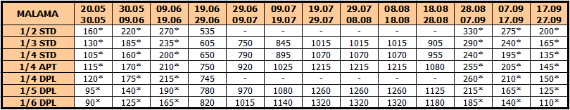 U smenama sa zvezdicom *, u slučaju sopstvenog prevoza cena paket aranžmana se umanjuje za 25€ po osobi.