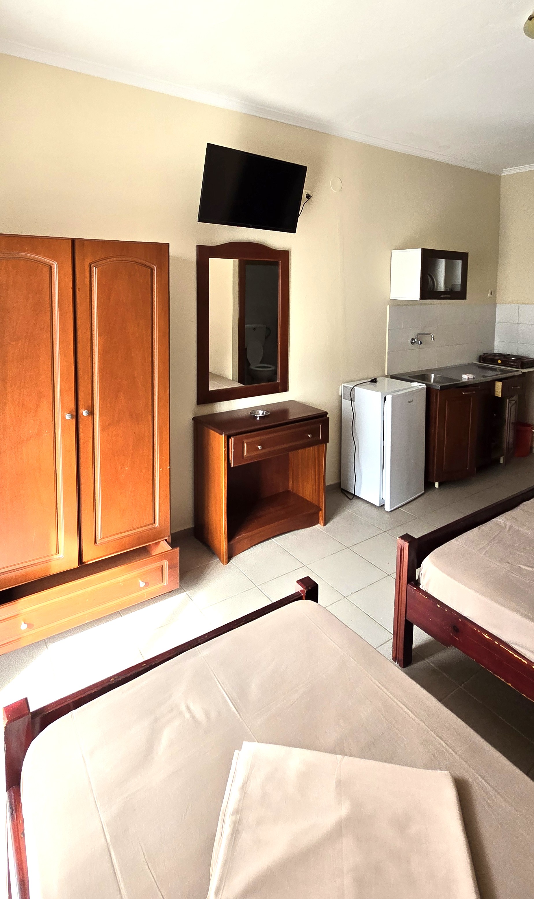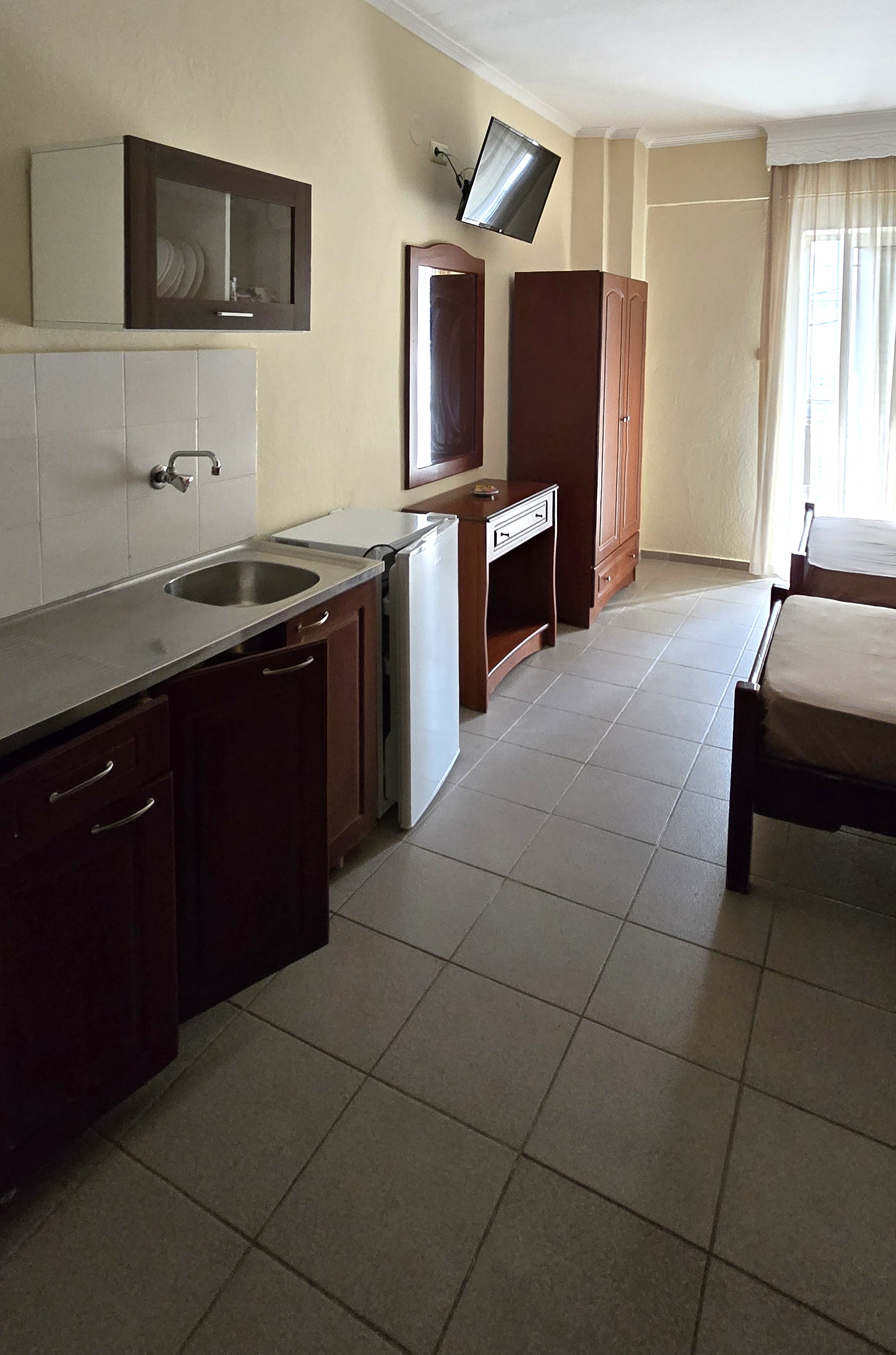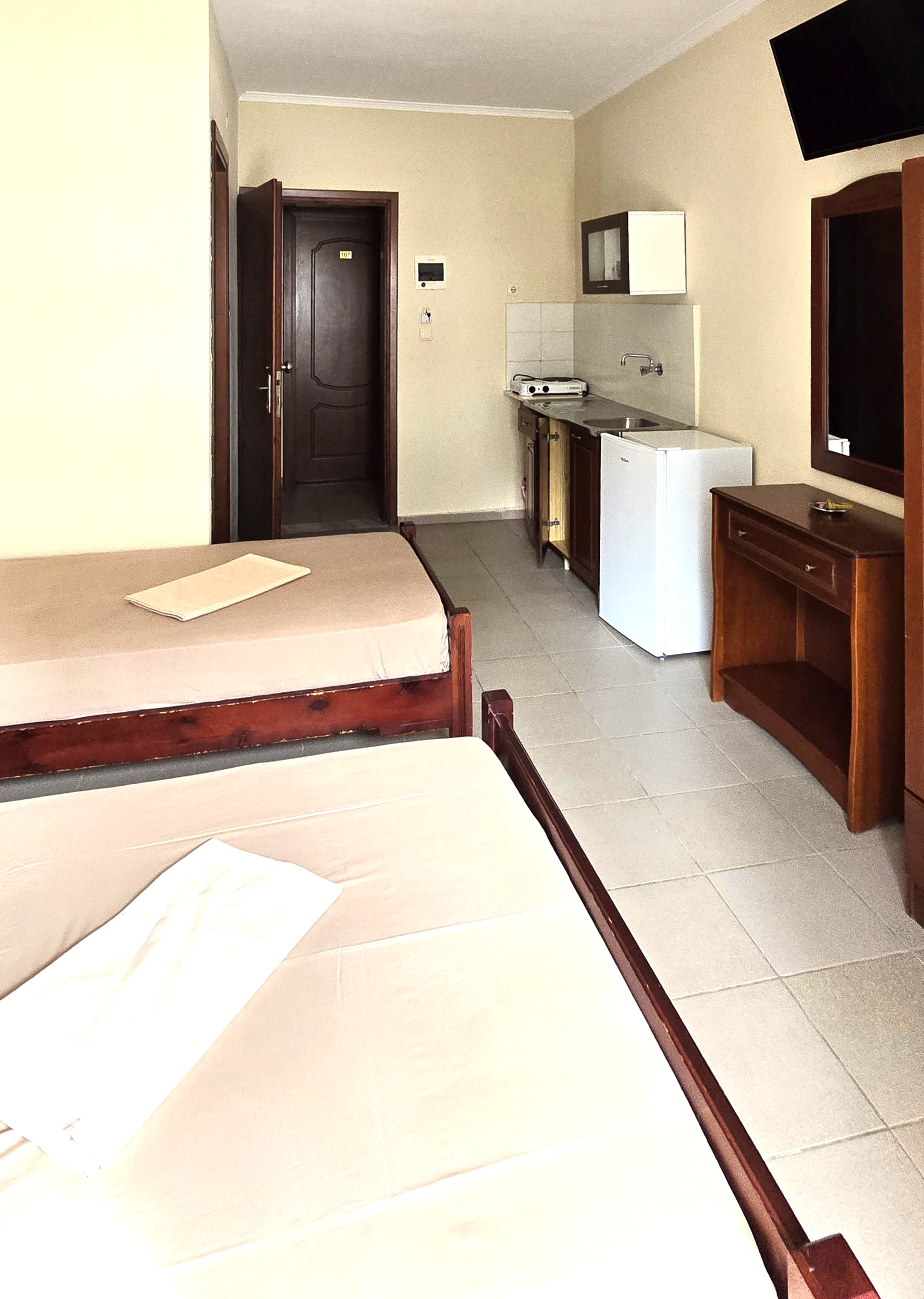 1/3 studio – u jednoj prostoriji čajna kuhinja, jedan bračni ležaj i jedan običan ležaj ili tri obična ležaja