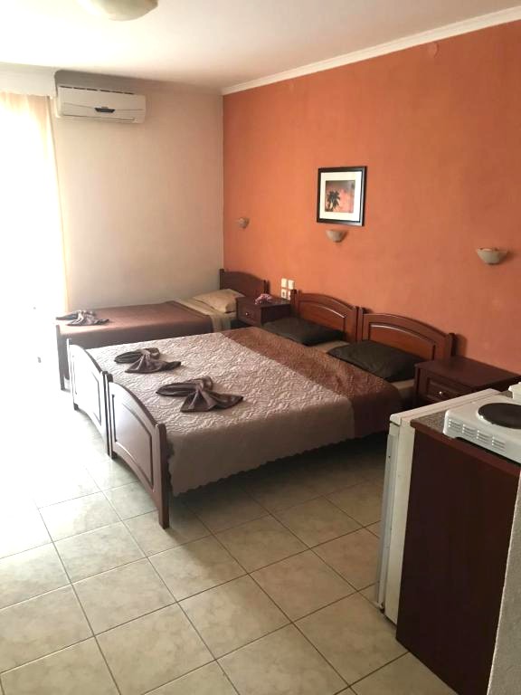 Svaki studio poseduje osnovno opremljenu kuhinju (osnovno posuđe, frižider, rešo, osnovni pribor za jelo), kupatilo, terasu sa garniturom za sedenje, TV i klima uređaj čije se korišćenje doplaćuje na licu mesta (6 evra dnevno – cena je podložna promeni). U objektu je na raspolaganju i besplatan Wi Fi internet čija se brzina protoka ne može garantovati. Smeštajne jedinice nemaju peškire (isti su korišćeni samo za potrebe fotografisanja), a promena posteljine se vrši na polovini boravka. Gosti sami održavaju higijenu u smeštaju. Vila nema sopstveni parking.