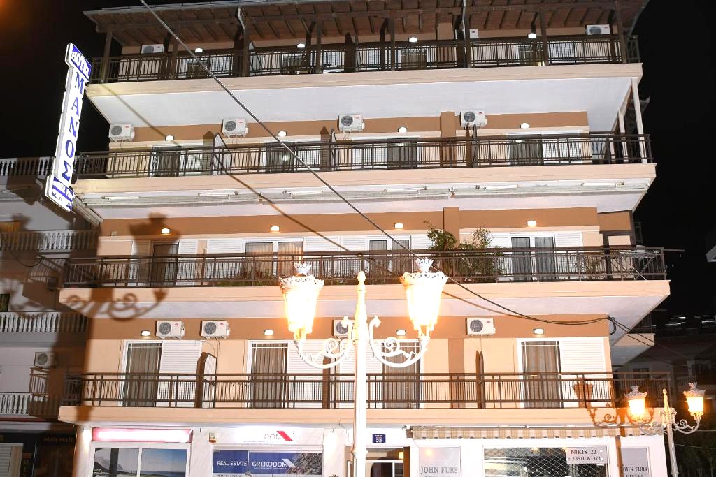 Vila Manos se nalazi na izuzetnoj lokaciji, u glavnoj ulici koja ide od Lidla ka crkvi, oko 220 metara od plaže, u centru Paralije i u blizini svih prodavnica, taverni, kafića, suvenirnica i ostalih turističkih sadržaja. Veliki supermarket Lidl je udaljen svega 50-ak metara.