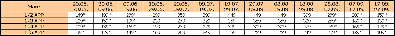 Za sopstveni prevoz cena aranžmana se umanjuje za 30€ po osobi, a 20€ za smene označene ZVEZDICOM (*)