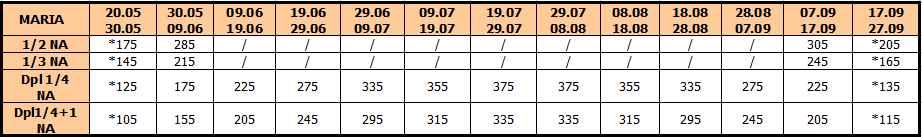 Kod prodaje duple smene, prva smena cena paket aranžmana po osobi, druga smena umanjenje 50€ po osobi i primenjuje se za polaske iz svih gradova.
