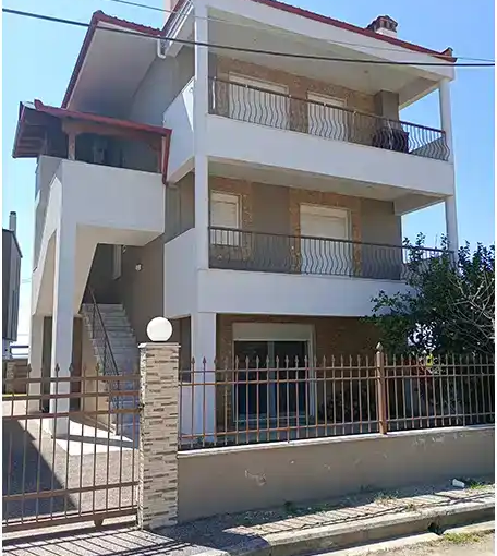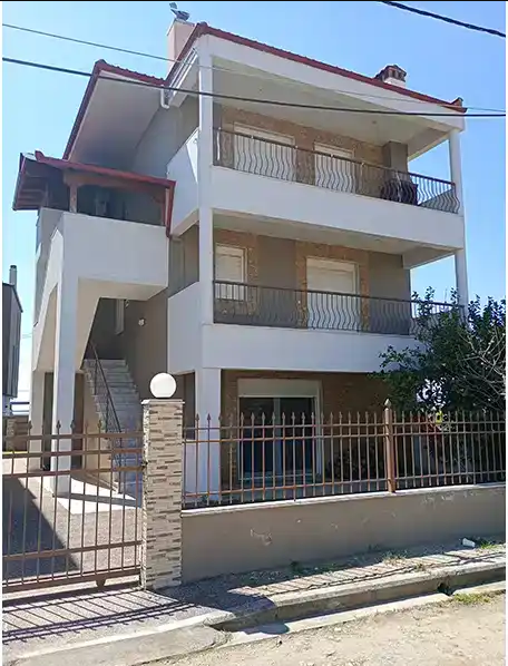 Vila Maria se nalazi na 100m od plaže u novijem delu Nea Flogite, a od centra je udaljena oko 500m. Dupleks se nalazi na prvom spratu ima dve terase sa pogledom na more i na ulicu. Poseduje dve spavaće sobe, jednu sa francuskim ležajem i drugu sa francuskim ležajem, kao i dnevni boravak sa kuhinjom i trpezarijom u kome se nalazi sofa na razvačenje (za maksimalno pet odraslih osoba i jedno dete do 6 godina). Promena posteljine i peškira je na 5 dana, ima TV sa lokalnim kanalima, wifi, klima uredjaj( korišćenje uključeno u cenu ). Vila nema obezbeđen parking.