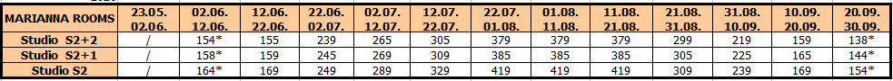 – Turističku taksu: 2€ po sobi dnevno (plaća se na licu mesta, direktno vlasniku i podložna je promeni)