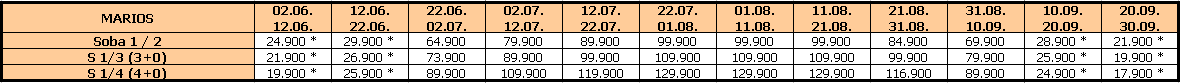 Cene sa zvezdicom označavaju paket aranžman po osobi, smeštaj+prevoz+trajekt (umenjenje za sopstveni prevoz 3.500rsd)