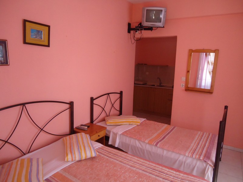 Vila je moderno uređena, sa prostranim terasama, i konfornim studijima sa pogledom na more. Raspolaže dvokrevetnim i trokrevetnim studijima, kao i petokrevetnim i šestokrevetnim dupleks apartmanima( sa dve odvojene spavaće sobe i dva kupatila), svi su na drugom spratu. Svaka smeštajna jedinica ima kompletno opremljenu kuhinju, kupatilo-TWC, terasu, TV i klimu čije se korišćenje doplaćuje na licu mesta (5€ dnevno po smeštajnoj jedinici). Ova doplata nije obavezna. Vila ima i besplatan WI-FI. Posteljina se menja na 5 dana. U prizemlju se nalazi restoran sa čuvenim grčkim specijalitetima. Vila nema peškire.