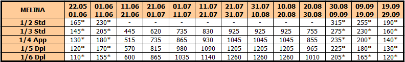 U smenama sa zvezdicom *, u slučaju sopstvenog prevoza cena paket aranžmana se umanjuje za 25€ po osobi.