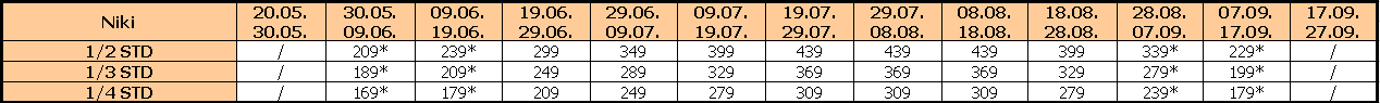 Za sopstveni prevoz cena aranžmana se umanjuje za 30€ po osobi, a 20€ za smene označene ZVEZDICOM (*)