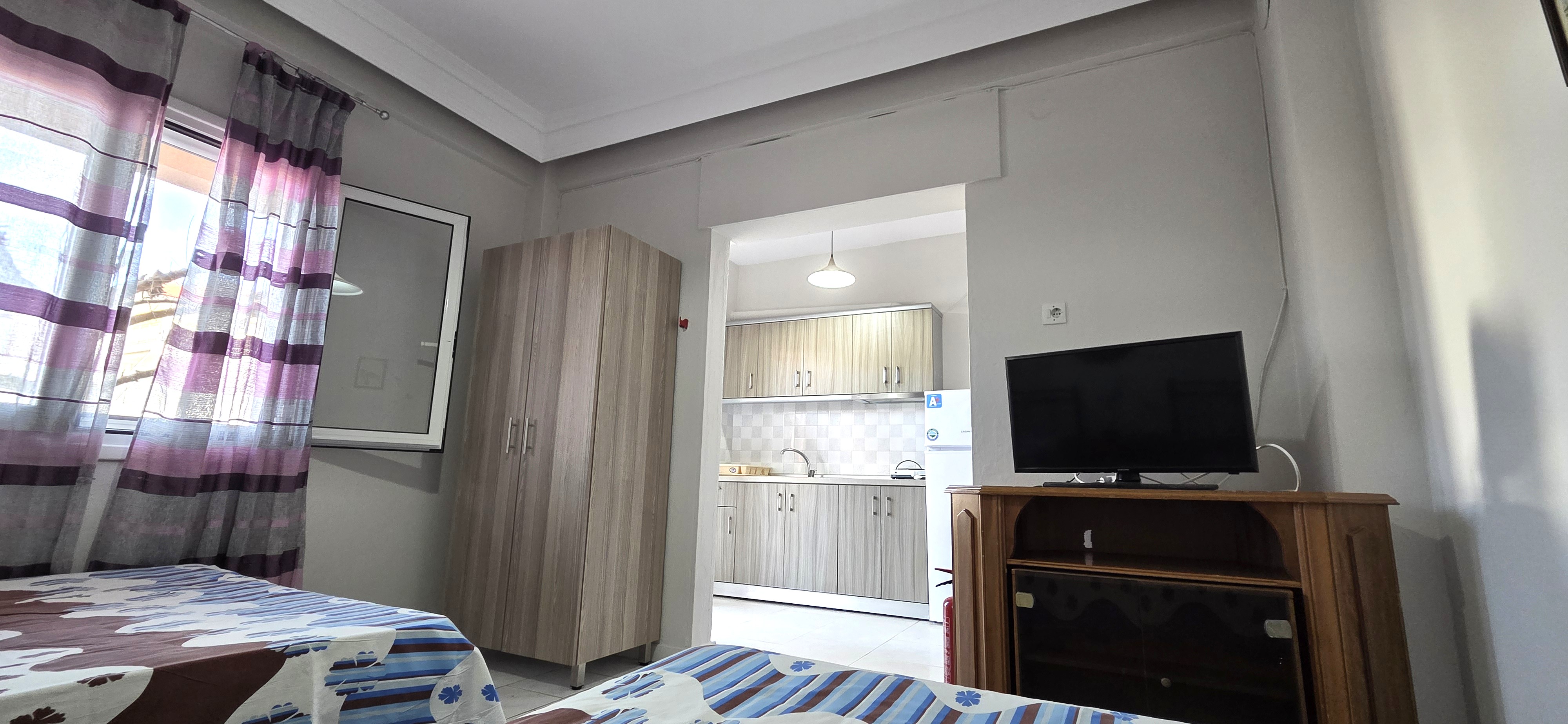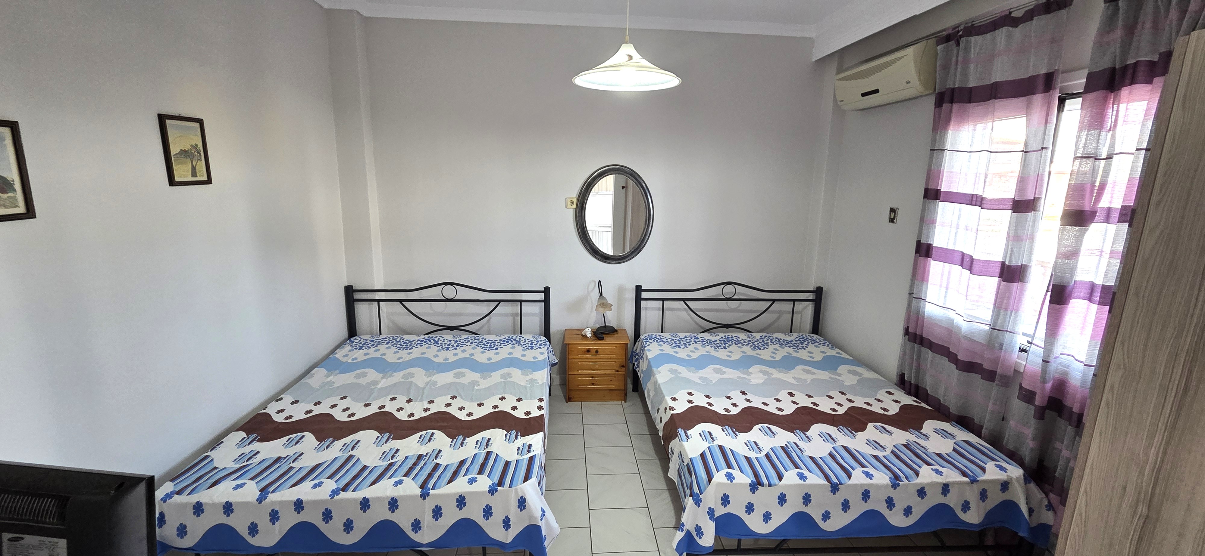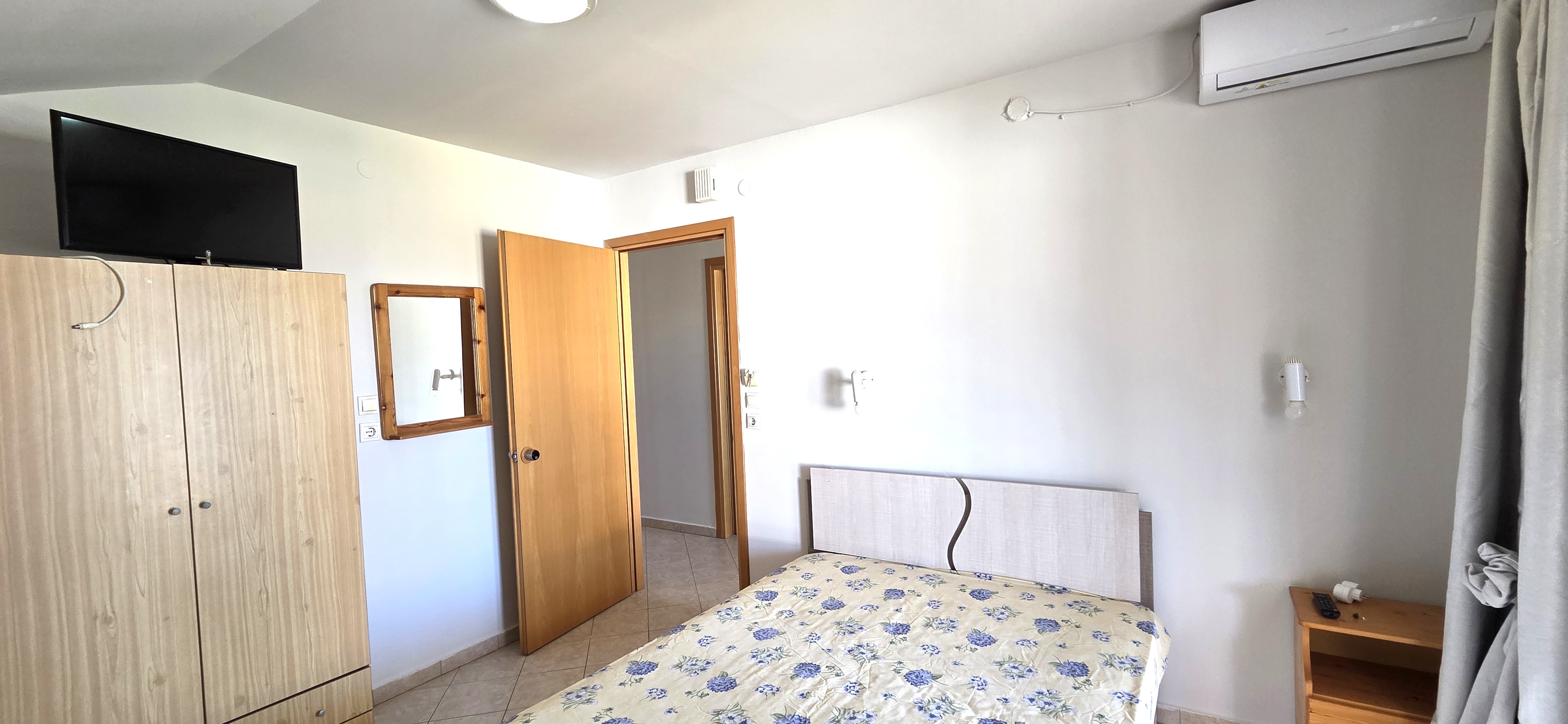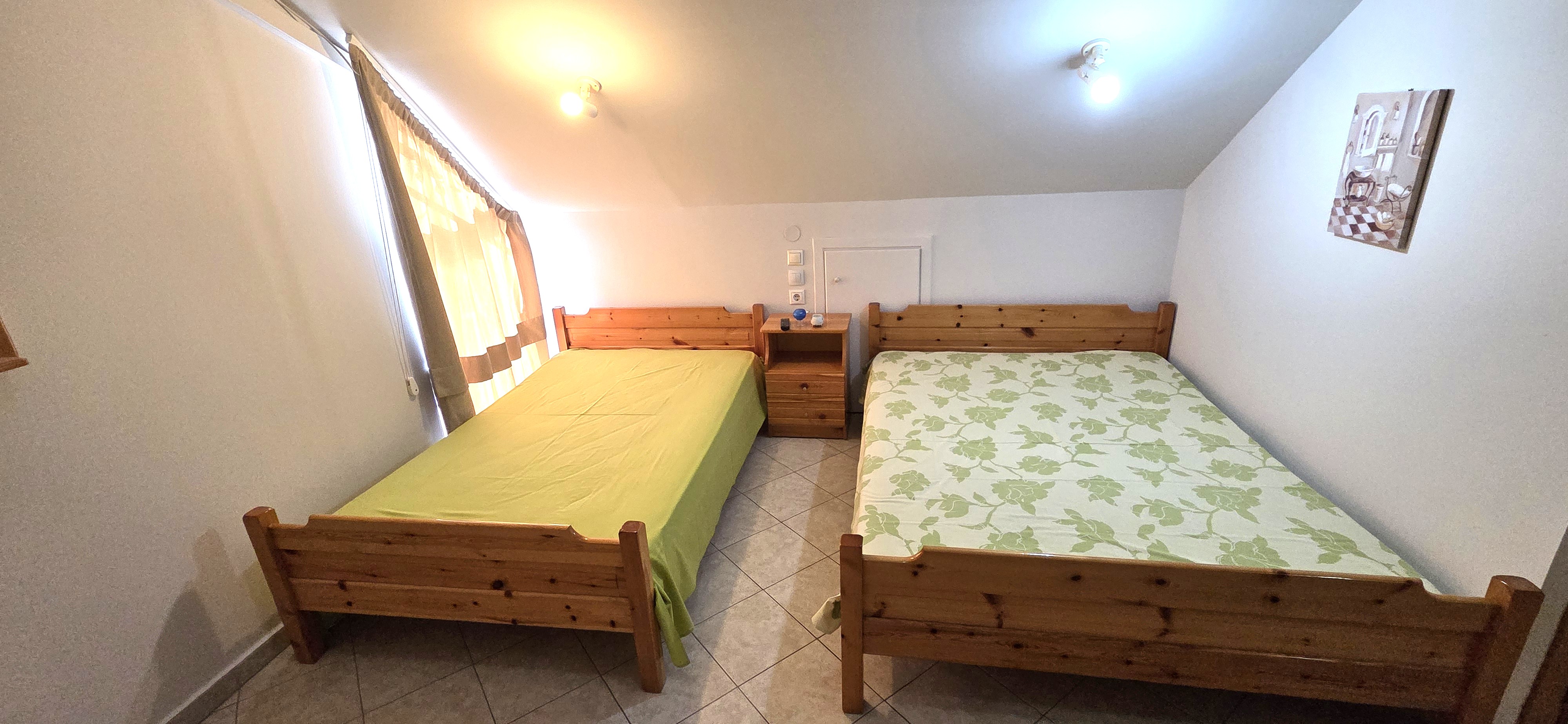 1/6 apartman – u jednoj prostoriji čajna kuhinja, jedan bračni ležaj i jedan običan ležaj kao i izlaz na terasu, u drugoj prostoriji jedan bračni ležaj i jedan običan ležaj. U obe prostorije kupatilo, klima uređaj i tv.
