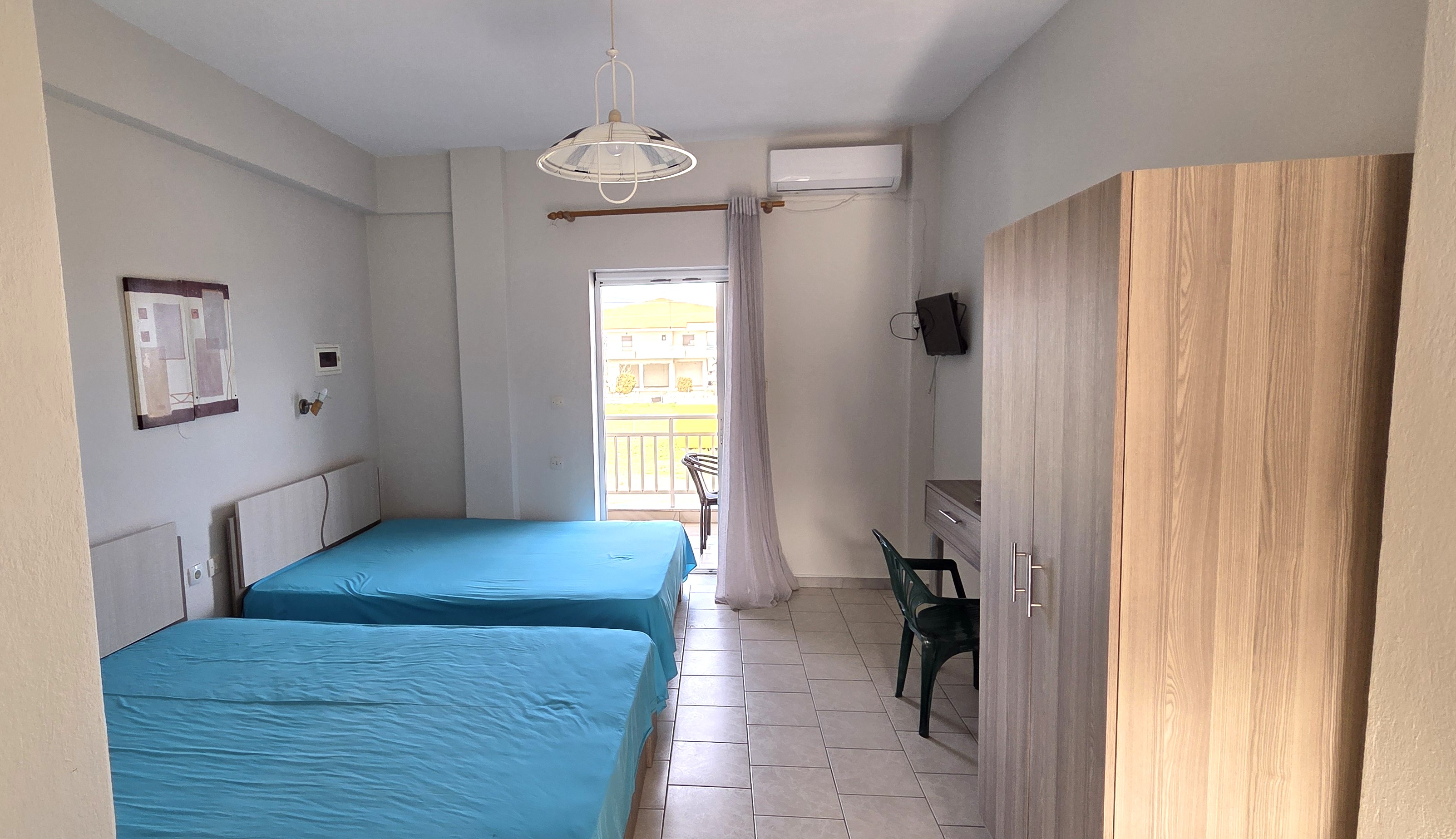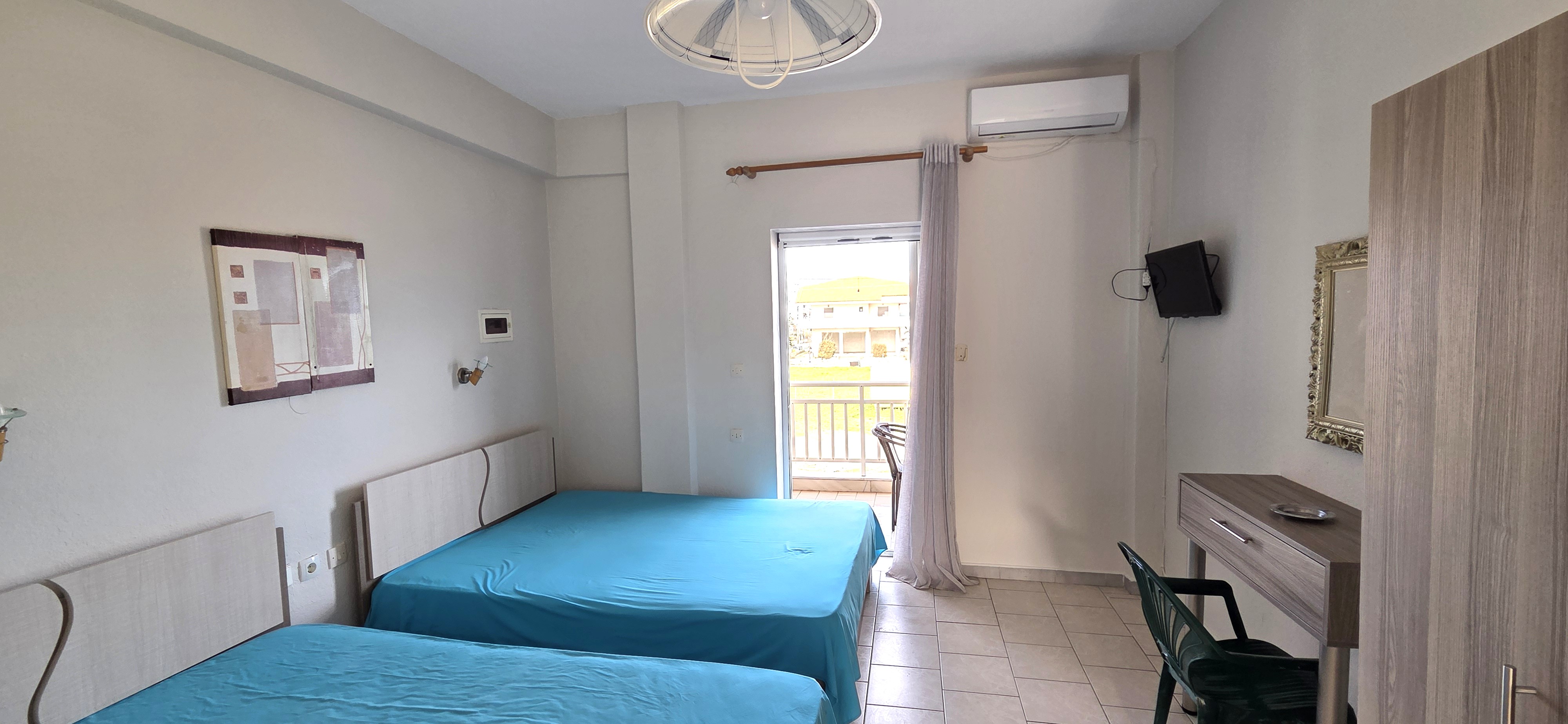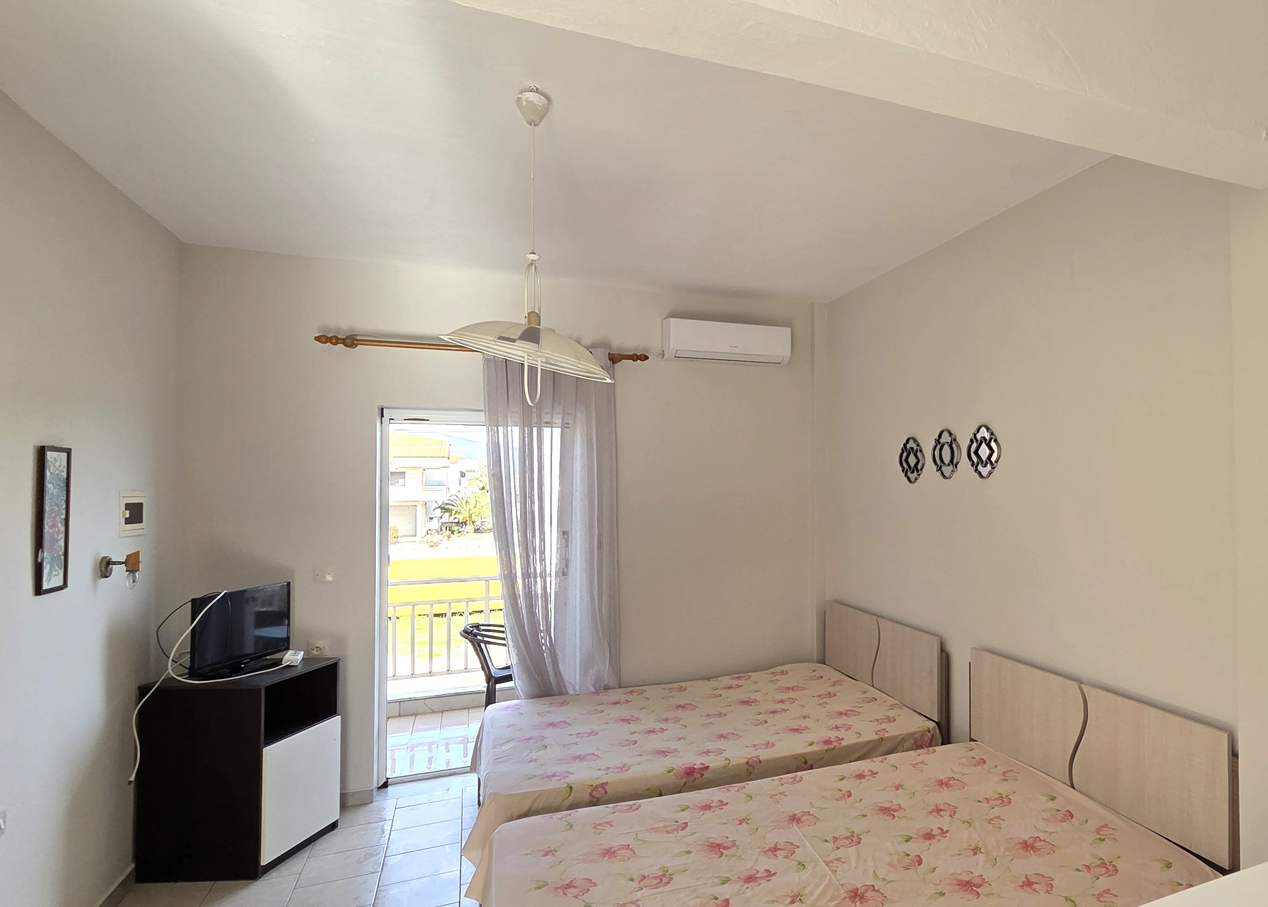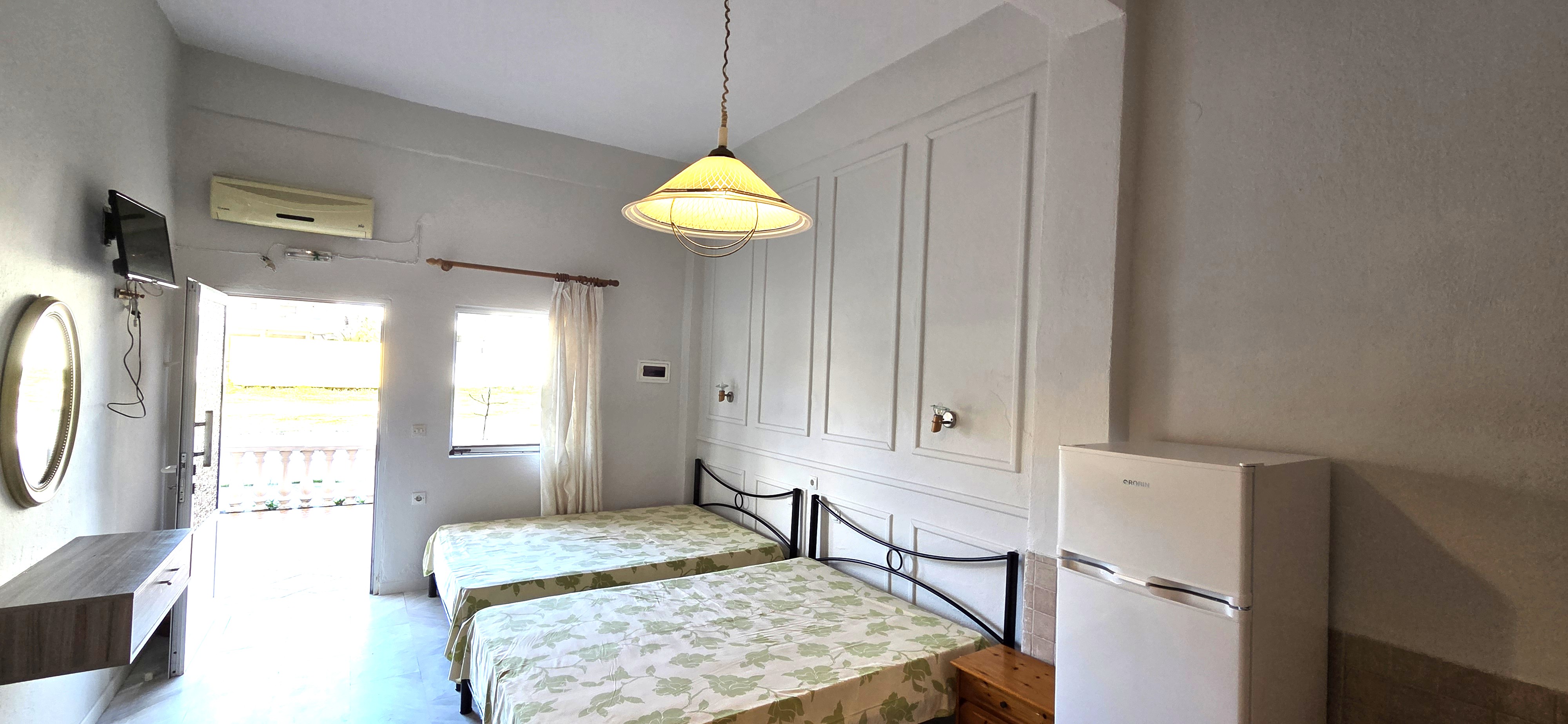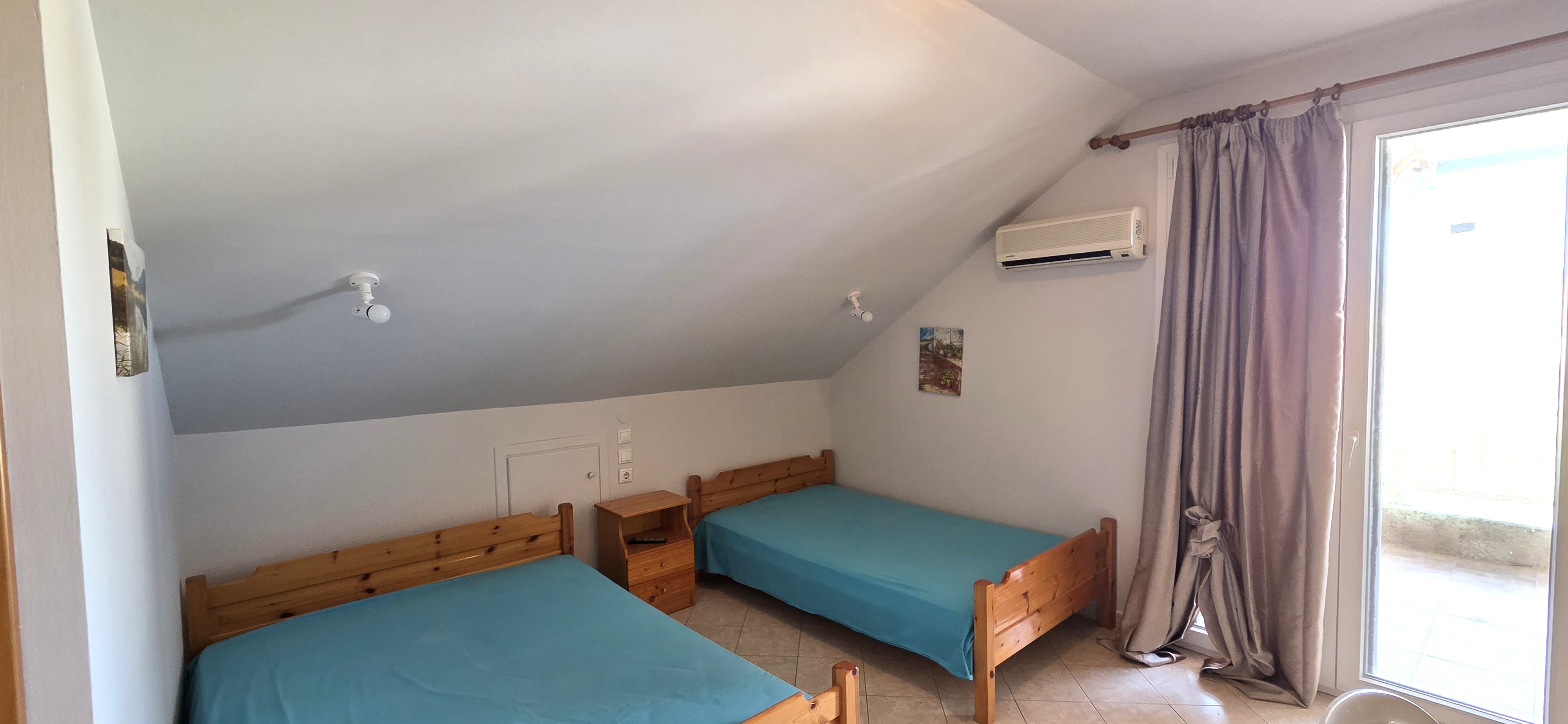 1/6 apartman – u jednoj prostoriji čajna kuhinja, jedan bračni ležaj i jedan običan ležaj kao i izlaz na terasu, u drugoj prostoriji jedan bračni ležaj i jedan običan ležaj. U obe prostorije kupatilo, klima uređaj i tv.