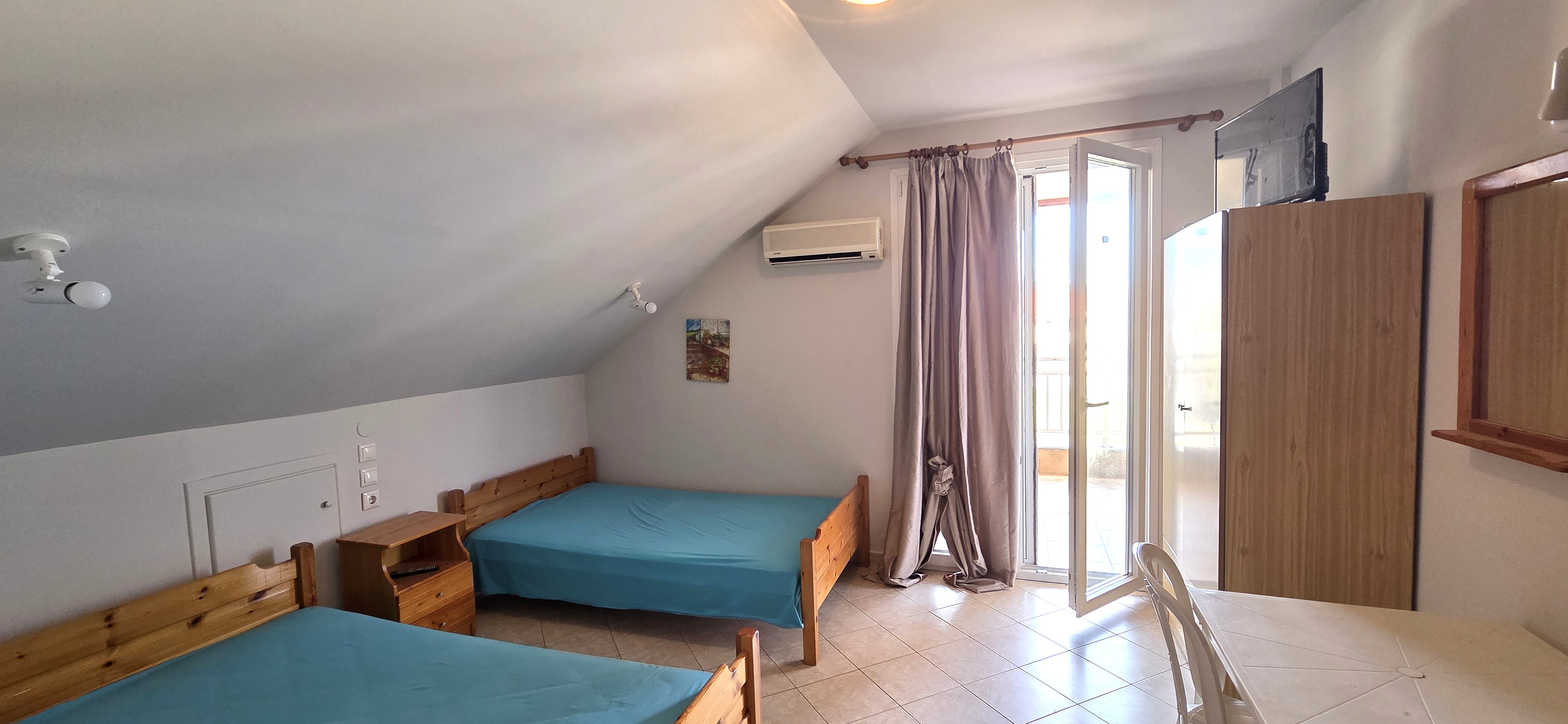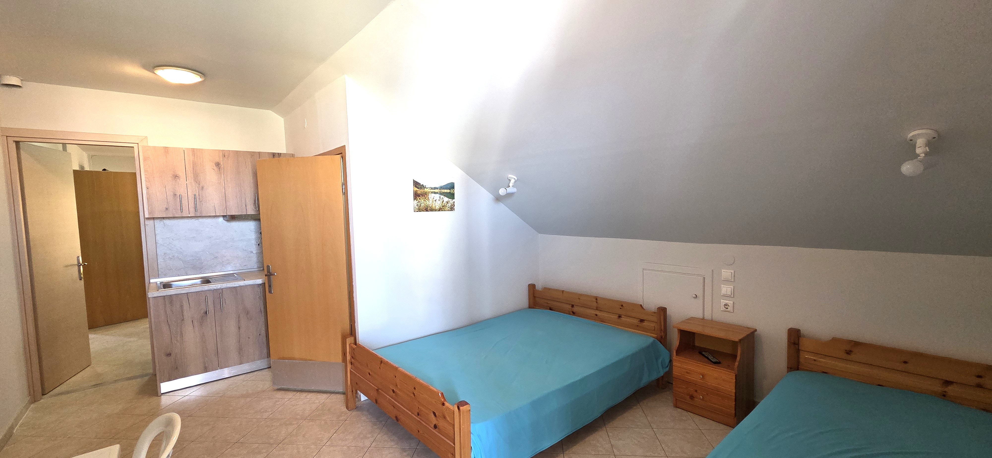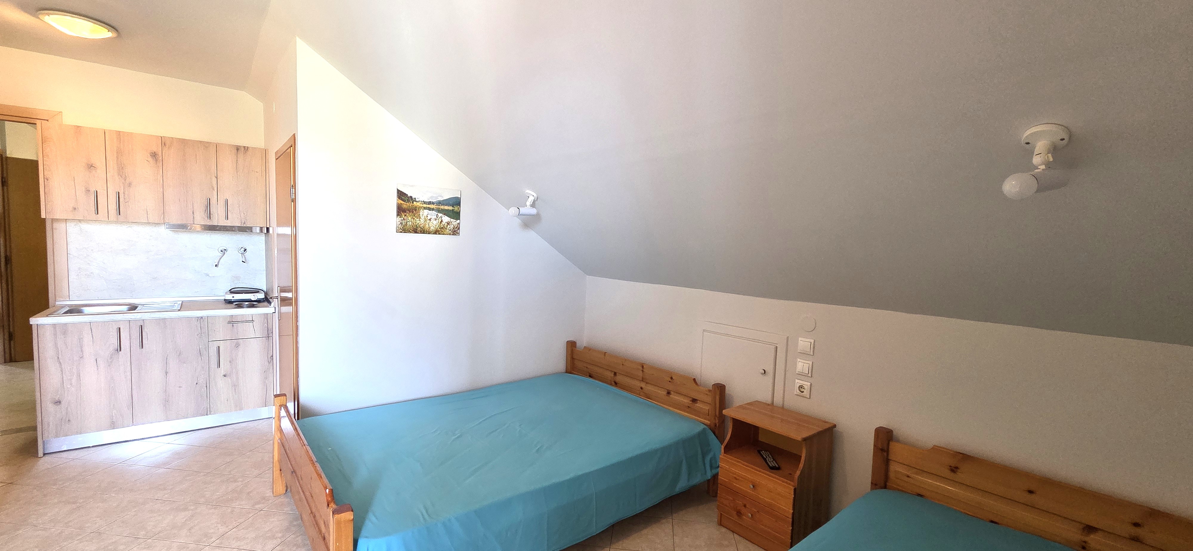 1/3 studio – u jednoj prostoriji čajna kuhinja, jedan bračni ležaj i jedan običan ležaj ili tri obična ležaja