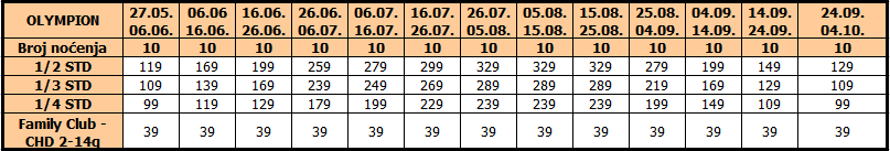 Cene su izražene u eurima po osobi na bazi najma za 10 noćenja