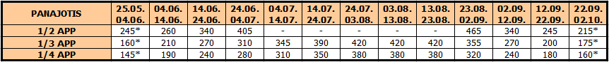 – termini označeni * nemaju umanjenje za sopstveni prevoz