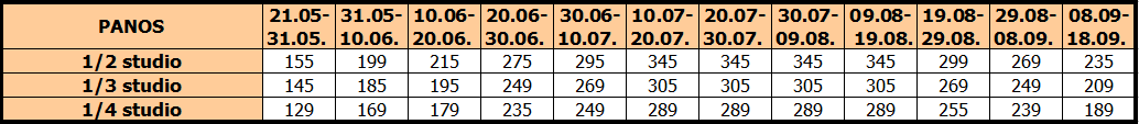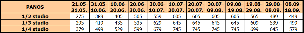 Cene su izražene na bazi najma po studiju/apartmanu za 10 noćenja
